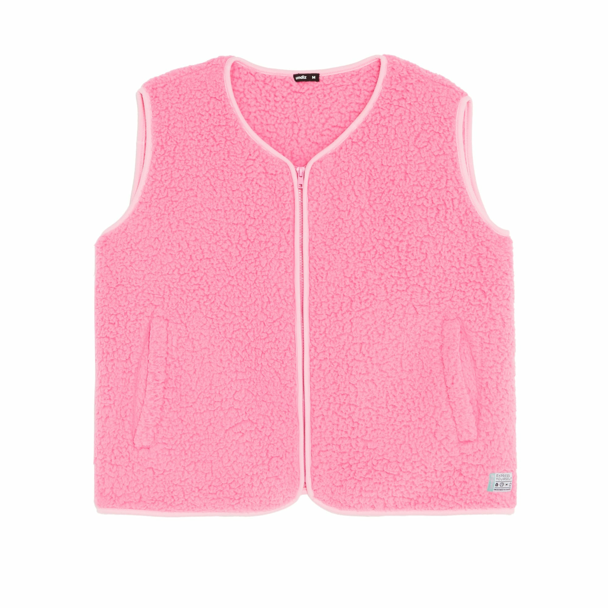 Conçue pour allier confort et style, cette veste Undiz enveloppe votre silhouette d’une matière sherpa ultra-douce, légère mais isolante. Sa coupe sans manches facilite la superposition, idéale pour rester au chaud sans contrainte de volume. Parfaite pour vos pauses détente à la maison ou vos sorties décontractées, elle se porte aussi bien sur un t-shirt que sur un pull fin.