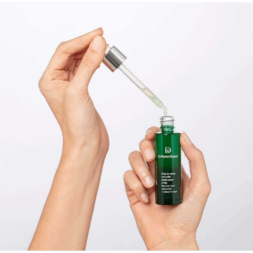 L’Elixir Bi-phase Anti-rides Multi-zones se présente en flacon avec un système de mélange facile, garantissant une parfaite homogénéité avant application. Adapté à tous types de peaux, il s’applique matin et soir, sur peau propre, en insistant sur les zones à traiter.