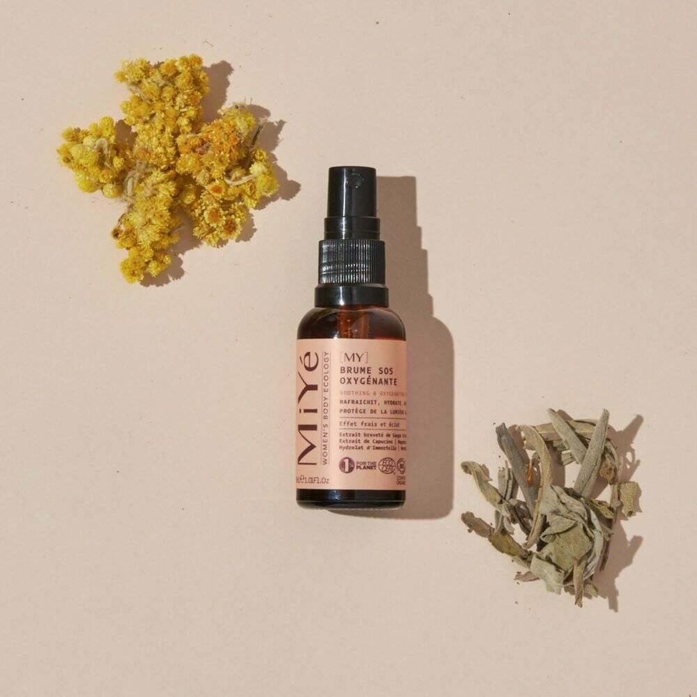 Comment utiliser la Brume SOS Oxygénante ? Vaporisez à 20 cm du visage, matin et soir, ou à tout moment pour un coup de fraîcheur.