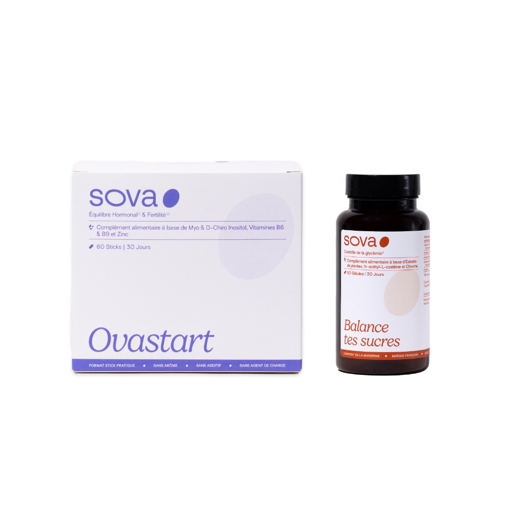 Le Pack Ovastart & Balance Tes Sucres associe des formules ciblées qui agissent en synergie pour soutenir votre organisme. Ovastart aide à réguler les hormones féminines, tandis que Balance Tes Sucres favorise une glycémie stable, limitant les pics et les baisses d’énergie. Ensemble, ils offrent un accompagnement naturel et efficace, idéal pour retrouver sérénité et vitalité.