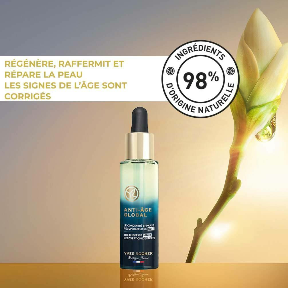 Réveillez votre peau avec une nouvelle énergie chaque matin. Le Concentré Bi-Phase Récupérateur de Nuit d’Yves Rocher agit pendant votre sommeil pour révéler une peau visiblement plus ferme et régénérée.